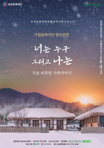 [시민일보 = 이대우 기자] 서울 송파구(구청장 서강석)가 오는 16일 오후 5시에 송파구민회관 대강단에서 ‘구립송파극단’ 창단공연 ‘너는 누구 그리고 나는’을 개최한다.