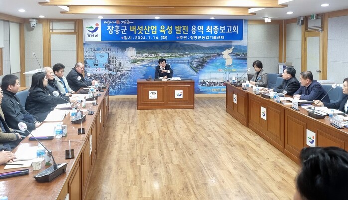 이날 열린 보고회는 김성 장흥군수와 실과소장, 버섯산업 관계자 등 30명이 참석한 가운데 진행됐다.