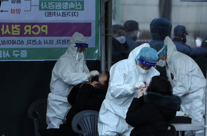 | ▲ 20일 오전 서울역 임시선별검사소에서 시민들이 신속항원검사를 받고 있다. 중앙방역대책본부는 이날 0시 기준으로 신규 확진자가 10만4829명 늘어 누적 196만2837명으로 집계됐다.(사진제공=연합뉴스) |