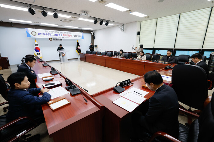 이날 촉구결의에서 특별위원회는 ▲도시계획심의위원회 안건 제출 경위에 대한 집행부의 공식적이고 신속한 설명 ▲유통3부지와 관련된 모든 주요 행정 절차에 대해 특별위원회와의 사전 보고 및 협의 이행 ▲의회를 단순한 추인 기구로 인식하는 행정 관행을 개선하고 협치 원칙을 존중할 것을 촉구했다.