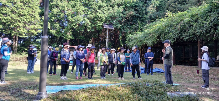| ▲ 지난해 열린 가좌산 건강 걷기대회에 참가한 주민들이 출발 전 설명을 듣고 있다. |