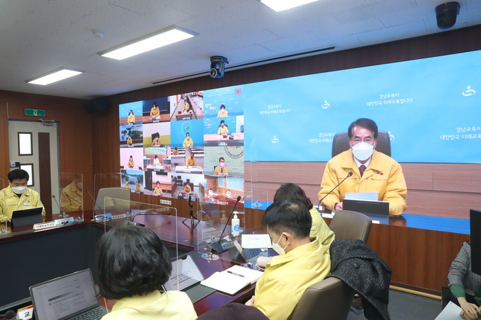 경상남도교육청(교육감 박종훈)은 2월 17일(목) 도교육청 부서장, 교육지원청 교육장이 영상으로 참여하는 긴급 교육정책관리자회의를 개최하였다.