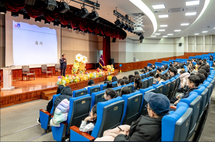 이권재 경기 오산시장은 최근 진행된 지역내 사립유치원 입학식 및 졸업식에 참석해 새로운 시작을 앞둔 유아들을 격려하고, 어린이들의 행복한 성장을 위해 오산시가 추진하는 다양한 사업들을 안내했다. 사진은 이 시장이 인사말을 하는 모습. (사진=오산시청 제공)