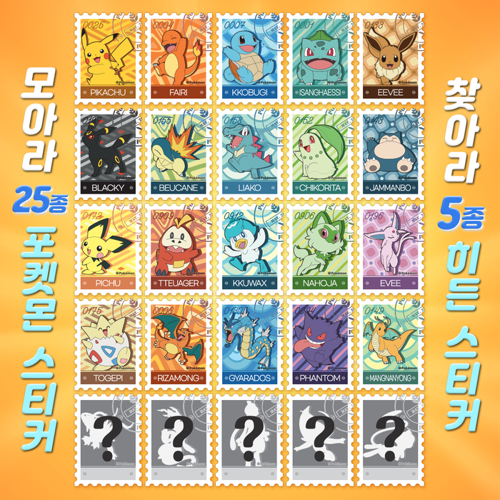 인기 포켓몬 20종과 히든 포켓몬 5종 총 25종의 우표 스티커가 180g 상품에는 2장씩 그 외 상품에는 한 장씩 랜덤으로 들어있어 수집하는 재미를 느낄 수 있는 프로모션을 같이 진행한다.