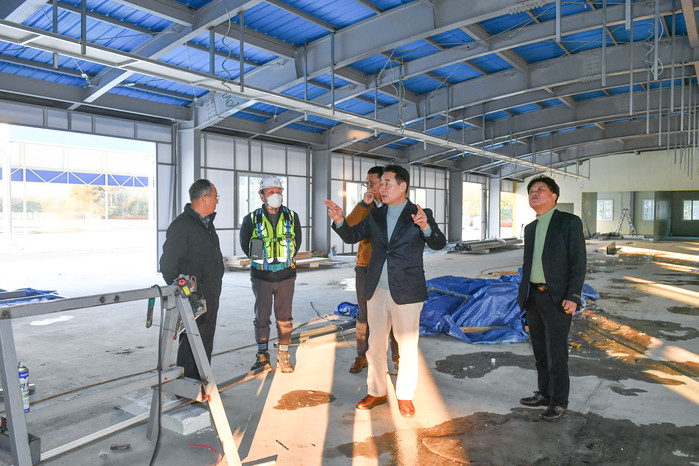 백영현 경기 포천시장이 최근 소흘읍 이동교리, 군내면 용정리, 창수면 가양리 일원에서 조성 중인 공공체육시설 공사 현장을 점검했다. 사진은 백 시장(오른쪽 두 번째)이 관계자들과 공사 현장을 점검하고 있는 모습. (사진=포천시청 제공)