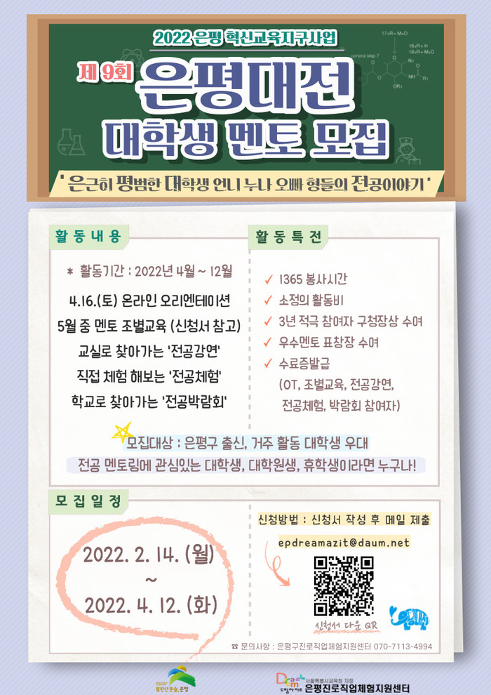 | ▲ 2022 은평대전 대학생 멘토 모집 포스터 (사진제공=은평구청) |