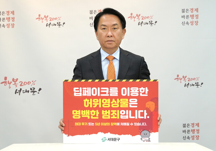 | ▲ ‘청소년 딥페이크 범죄 예방 챌린지’에 참여한 이성헌 서대문구청장. (사진=서대문구청 제공) |