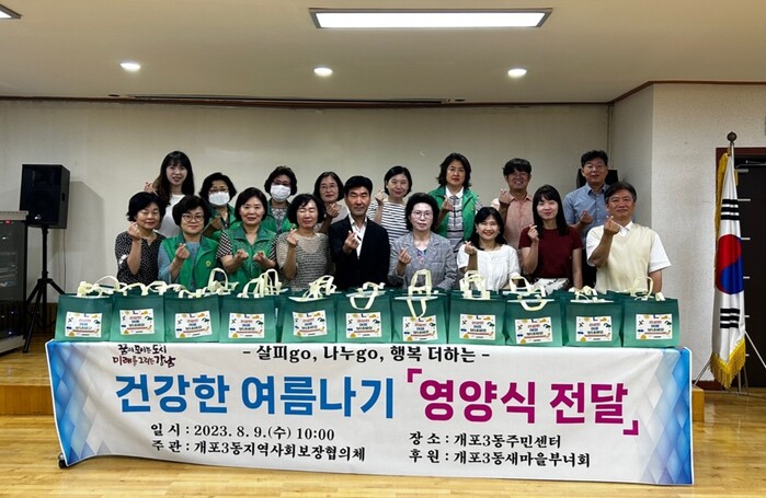 이번 행사는 개포3동의 ‘살피go, 나누go, 행복더하go’ 사업 일환으로 지역사회보장협의체가 주관하고 새마을부녀회가 후원했으며 우리동네돌봄단이 봉사자로 참여했다.
