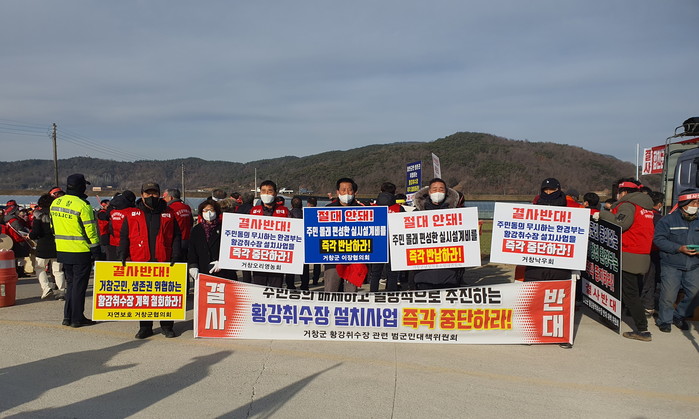 집회에는 신재화 거창군의회 의원, 이종희 한국농업경영인 거창군연합회 회장, 박달호 거창군 안전건설국장과 15여 명의 사회단체장들이 참여해 거창군민의 생존권을 위협하는 황강취수장 설치계획을 철회할 것을 강력히 주장했다.