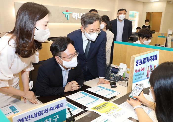 조규홍 보건복지부 1차관은 저소득 근로 청년의 목돈 마련을 위한 청년내일저축계좌 가입신청기간의 첫날 하나은행 영업1부를 방문해 은행의 사업 준비 상황을 점검하고 영업점을 직접 방문한 청년들로부터 이번 자산형성지원사업에 대한 생생한 현장 의견을 청취했다.
