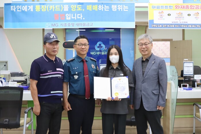 | ▲ 시흥경찰서는 `전화금융사기(보이스피싱) 조직원 검거에 협조한 새마을금고 직원 A씨에게 감사장 및 검거보상금을 전달했다 /사진제공=시흥경찰서 |
