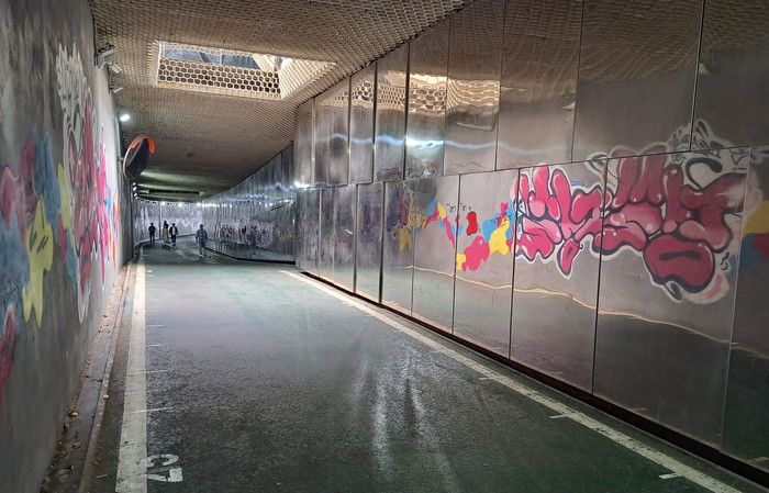 29일 구에 따르면 ‘청담나들목’은 주민들이 한강공원에 가기 위해 이용하는 통로로, 내부의 회색 시멘트벽이 그대로 드러나 어둡고 삭막한 환경을 밝은 분위기로 개선해달라는 주민 요청이 많았다.