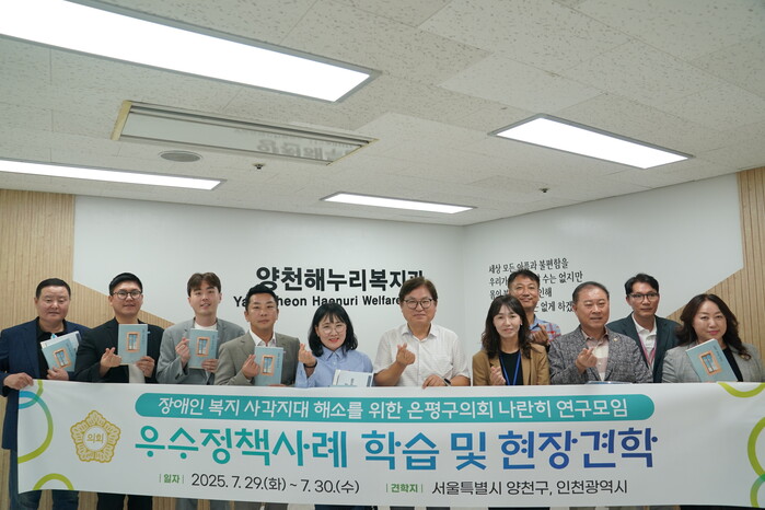 [시민일보 = 이대우 기자] 서울 은평구의회(의장 송영창) 의원연구단체인 ‘나란히 연구모임’이 최근 서울 양천구와 인천의 한 장애인복지시설을 방문해 중장년 발달장애인을 위한 돌봄·자립지원 정책 우수사례를 견학했다.