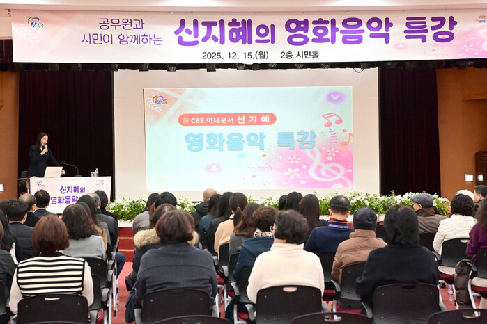 이날 특강은 오전과 오후, 2회에 걸쳐 진행됐으며, 200여 명의 시민과 공무원이 참석해 높은 관심을 보였다. 강의는 「영화음악의 이해와 감상」을 주제로 ▲영화음악의 기초 용어 설명 ▲장면을 완성하는 음악의 기능 ▲감동을 더했던 명장면 사례 등을 중심으로 구성돼 큰 호응을 얻었다.