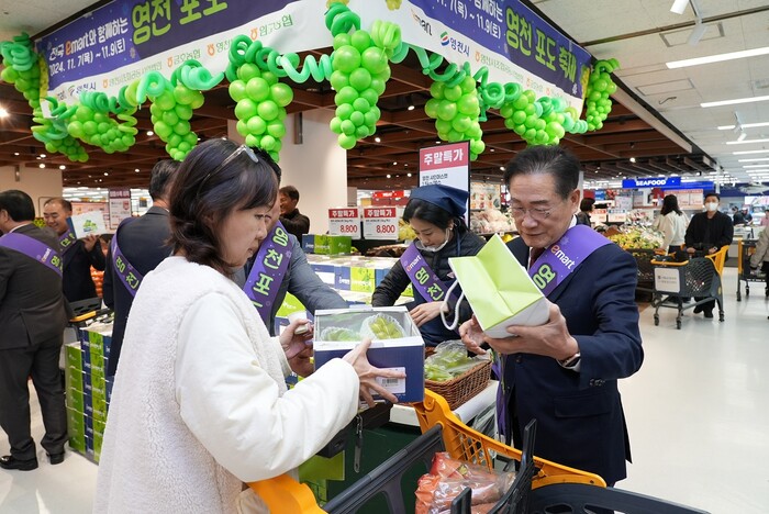 최기문 영천시장은 “최근 전국적인 샤인머스켓 단가하락으로 인해 농가들의 걱정이 많았다”며, “이번 대형마트 특판행사 외에도 영천포도의 뛰어난 품질을 알리고 안정적인 판로를 확보할 수 있는 다양한 방안을 찾기 위해 앞으로도 노력하겠다”고 말했다.