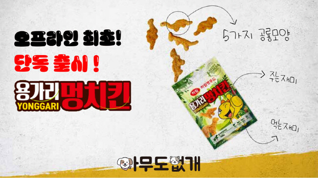 최근 100호점 오픈을 한 24시 무인 애견용품 편의점 아무도없개가 ‘하림 용가리 멍치킨’을 강아지 애견용품 오프라인 매장에서 최초 판매를 시작한다고 19일 밝혔다.