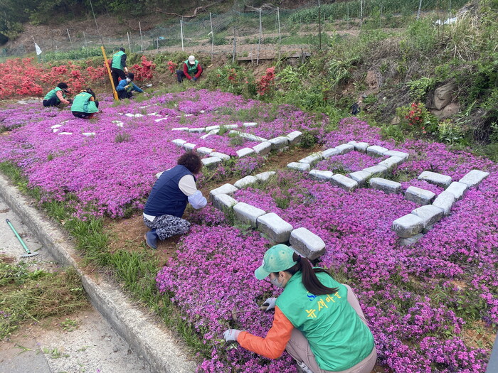한편, 명석면 새마을부녀회(회장 조정숙)와 새마을지도자협의회(회장 김인희)는 2020년부터 약 500㎡의 공한지에 연산홍과 꽃잔디를 식재해 오고 있으며, 올해도 연중사업으로 추진됐다.