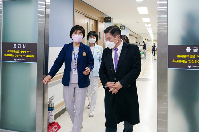 한편 보건의료재난 위기경보가 ‘경계’에서 ‘심각’ 단계로 격상한 지난 23일, 이필형 동대문구청장은 관내 경희대학교병원과 삼육서울병원을 방문하여 진료상황 및 응급의료체계를 직접 점검하고 의료공백 상황에서 어려움을 겪고 있는 현장 의료진을 격려했다.