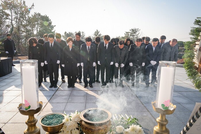 시무식에 앞서 시의원들은 충혼탑 참배를 통해 순국선열과 호국영령의 숭고한 뜻을 기리며 김해시의 발전과 시민의 행복을 기원했다.