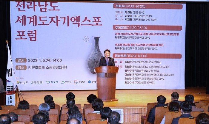 이날 포럼에는 김철우 전남대학교 미술학과 교수가 ‘전남 서남권 도자기엑스포 개최 당위성 및 도자산업 발전 방향’주제 발표를 시작으로 김희승 전)동신대학교 호텔경영학과 교수가 ‘엑스포 개최를 통한 도자산업 관광 상품화 방안’주제발표를 이어갔다.