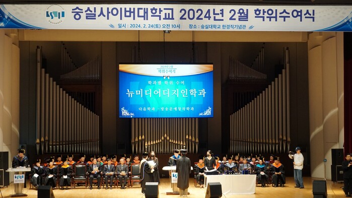 정병욱 부총장과 실용영어학과 박상도 교수의 기도로 시작된 학위수여식에는 이정재 기획처장의 학사보고와 학위수여, 졸업축사, 총장상 및 총동문회장상, 성적 최우수상, 우수상에 대한 시상, 격려사 및 졸업생 대표인사, 축가 순으로 진행됐다. 매년 숭실사이버대 학위수여식에서는 졸업생 본인의 학위수여와 동행증서가 함께 수여된다. 동행증서는 졸업생이 성공적으로 졸업까지 이룰 수 있도록 곁에서 지원과 격려를 아끼지 않았던 졸업생 가족 또는 지인들의 노고에 감사하는 의미로 졸업생 가족 또는 지인들에게 동행증서를 함께 수여함으로써 축하와 감사의 의미를 새기기 위해 마련되어 시행하고 있다.