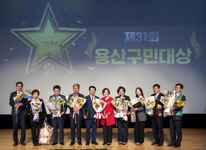 구는 구민대상 시상식에서 ▲선행봉사상(오원석) ▲모범가족상(김순임) ▲문화예술상(삼성문화재단) ▲생활체육진흥상(곽영구) ▲지역발전상(김민기) ▲환경보호상(김해자) ▲교육발전상(이재숙) ▲안전상(강성준) ▲특별상(새마을지도자 용산구협의회) 등 9개의 상을 전달하고, 명예용산구민증 수여식에서는 에드워드 조 케이시 미 육군 기지사령부 사령관에게 명예용산구민증을 수여했다.