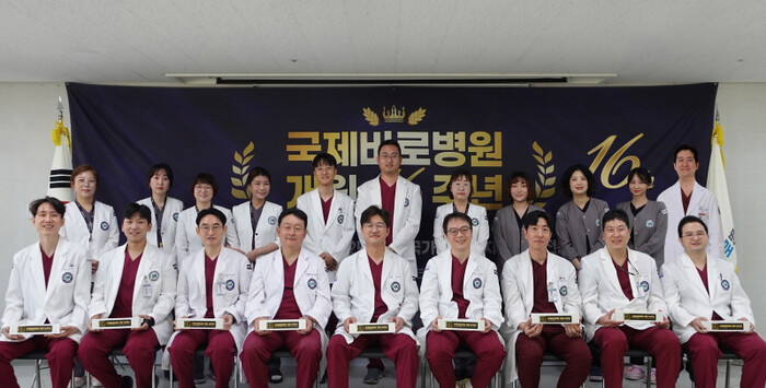 | 국제바로병원 개원 16주년을 맞아 그랜드라운딩 참가자들이 포즈를 취하고 있다. (사진=국제바로병원) |