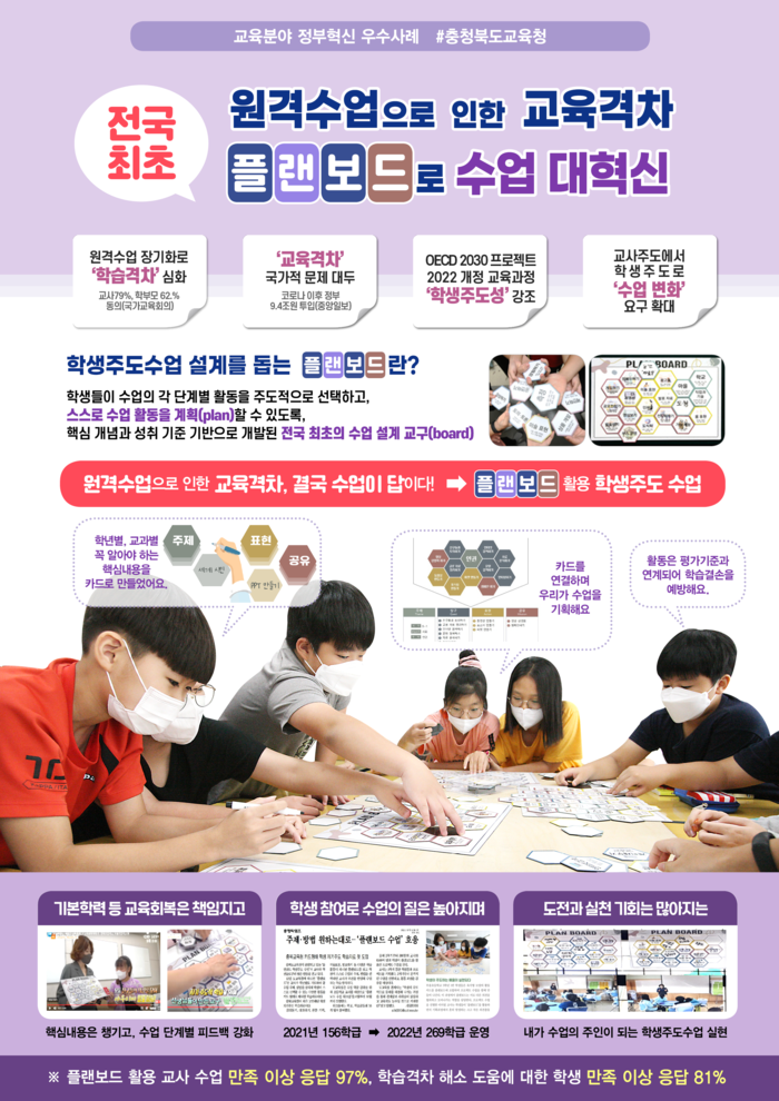 특히, 학생들은 수업시간 이외에도 스스로 수업을 준비하는 모습들이 나타났다. 현재는 충북도내 50여개 초등학교에서 플랜보드 수업이 진행되고 있다.