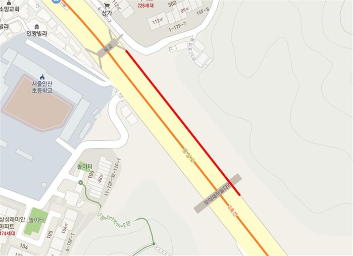 | ▲ 세검정로 3길 26 일대 공사 위치도 (사진=서대문구청 제공) |