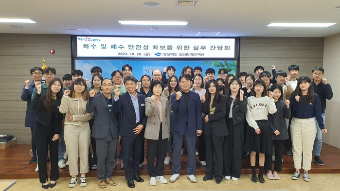 | ▲ 하수 및 폐수 안전성 확보를 위한 실무 간담회에 참석한 담당 공무원들이 기념촬영을 하고 있다. (사진=경북도청 제공) |