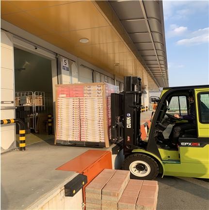 | ▲ 인도네시아 수출을 위해 패킹된 딸기가 인천공항으로 가는 수송차량에 선적되고 있다. |