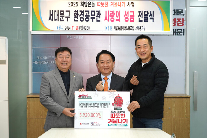 [시민일보 = 이대우 기자] 서대문구(구청장 이성헌) 환경공무관 82명이 따뜻한 겨울나기 성금 592만원을 기부했다.