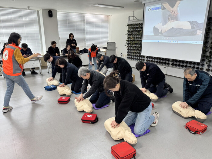 교육은 대한적십자사 인천지사 소속 전문 강사가 10개의 사업장을 방문, 심폐소생술(CPR) 실습, 자동심장충격기(AED) 사용법, 기도 폐쇄 시 응급처치 요령 등 실무 중심의 프로그램으로 구성했다.