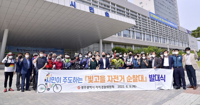 [광주=정찬남 기자] 광주광역시 자치경찰위원회는 9일 시청 무등홀에서 취약지역 치안 불안 요소 점검 등을 위한 시민 참여 ‘빛고을 자전거순찰대’ 발대식을 개최하고 본격 활동에 나섰다.