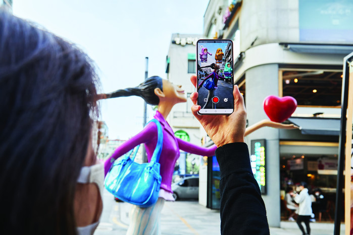 | ▲ 압구정로데오 줄리엣동상 앞에서 실행한 플레이메타로드. (사진제공=강남구청) |