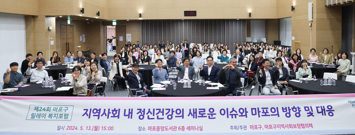 마포구와 마포구지역사회보장협의체가 주최한 복지 포럼은 ‘지역사회 내 정신건강의 새로운 이슈와 마포의 방향 및 대응’이라는 주제로 개최됐으며, 지역복지 발전을 위해 민관 사회복지종사자와 지역사회보장협의체위원, 지역주민 등 80여 명이 함께했다.