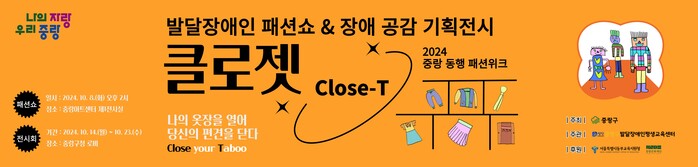 행사는 크게 발달장애인 패션쇼와 장애공감 기획전시회로 구성된다. 먼저, 오는 8일 오후 2시 중랑아트센터 제1전시실에서 성인 발달장애인 패션쇼 ‘클로젯’을 선보인다. 패션쇼의 이름인 ‘클로젯(Closet)’은 ‘Close your Taboo’의 약자로, ‘장애인은 이런 모습이다’라는 사회적 금기(Taboo)를 깨고자 ‘옷장’이라는 뜻의 ‘클로젯(closet)으로 표현했다.