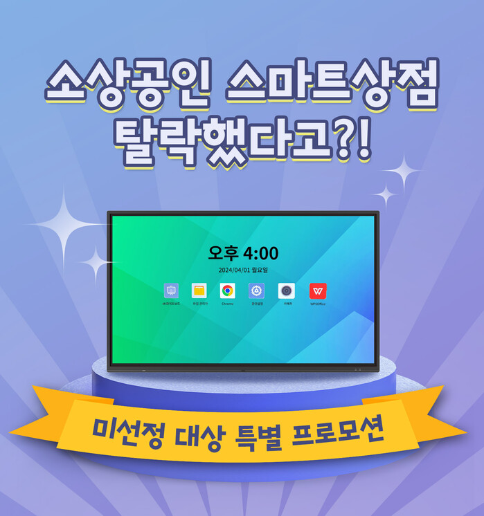 전자칠판 전문기업 ‘스마트터치’가 지난 4월 진행했던 ‘2024년 소상공인 스마트상점 기술보급사업’진행 당시 미선정된 고객을 대상으로 이벤트를 진행한다고 밝혔다.