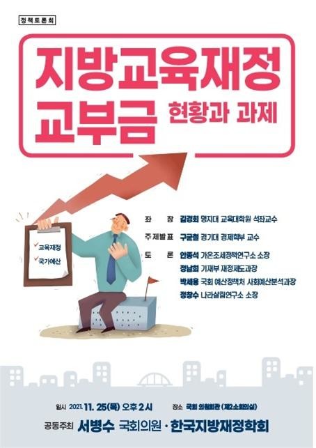 서병수 국민의힘 의원(부산 부산진구갑)이 11월 25일(목) 오후 2시 국회의원회관 제2소회의실에서 ‘지방교육재정교부금 현황과 과제' 토론회를 개최한다.