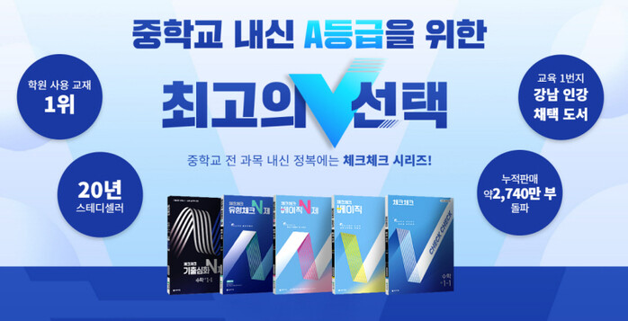 천재교육의 체크체크 시리즈는 출시 20년이 넘도록 꾸준히 사랑받아 온 중학교 내신 대표 브랜드로, 시험 직전 단기 대비는 물론 복습과 누적 학습까지 병행할 수 있도록 설계돼 있다. 체크체크 시리즈는 천재교육 공식 브랜드 페이지와 스마트 스토어, 그리고 전국 주요 오프라인 서점에서 만나볼 수 있다.