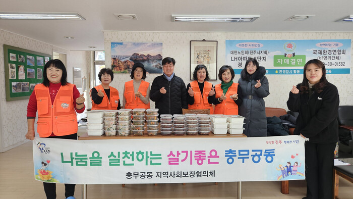진주시 충무공동 지역사회보장협의체(위원장 박기현)는 19일 위원들이 정성껏 조리한 밑반찬과 관내 김대감 소뼈 보양탕(대표 김천환)에서 후원한 보양탕을 관내 취약계층 10세대에 지원하는 나눔 봉사를 실시했다.
