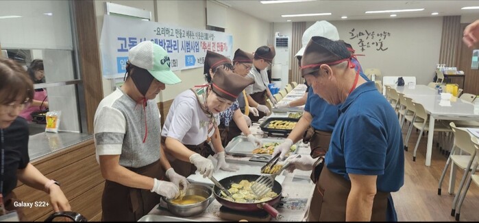 이번 행사에는 미래푸드 시스템 요리선생님의 지도를 받으며 동태전, 동그랑땡, 꼬치 산적 등을 함께 만들어 다른 홀몸 어르신 가구에 전달했다.