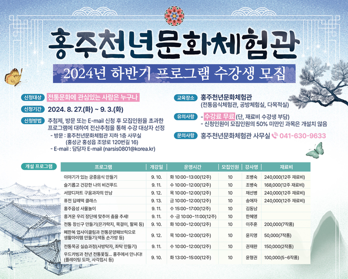 수강 신청은 27일부터 9월3일까지 진행되며, 전통문화에 관심 있는 누구나 참여할 수 있다.