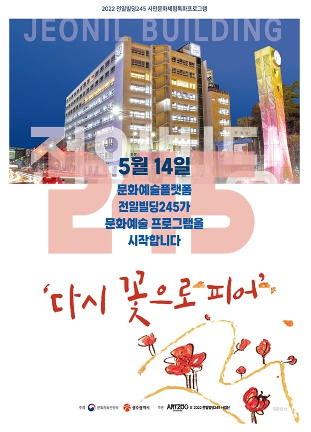 특히, 개관 2주년을 맞은 전일빌딩245 곳곳에서 시민들이 다채로운 문화예술을 향유할 수 있도록 기획한 프로그램으로, 역사적 의미를 간직한 전일빌딩245를 거점으로 공연, 전시, 플리마켓, 문화예술체험 프로그램 등 다양한 프로그램을 진행해 시민들의 발걸음을 이곳으로 이끈다는 계획이다.