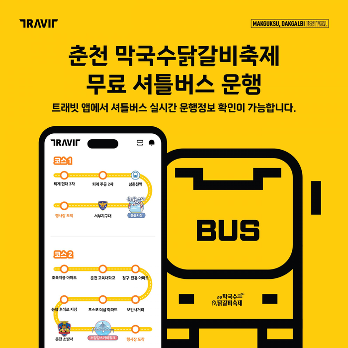 셔틀버스는 축제 운영 시간과 동일하게 매일 오전 10시부터 오후 11시까지 지정된 코스를 순환하며, 트래빗 앱을 통해 현재 위치를 확인하고 탑승할 수 있다.