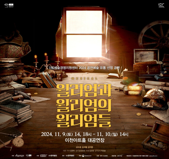 예술경영지원센터의 지원사업인 공연예술 유통 사업의 일환으로 개최되는 뮤지컬‘윌리엄과 윌리엄의 윌리엄들’은 셰익스피어의 유물에 관한 사기극이라는 실화에 상상력을 더한 창작뮤지컬이다.