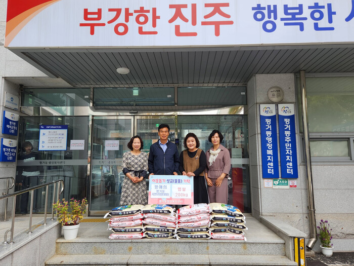 평거동자연보호협의회 방애희 회장이 지난 13일 관내 어려운 이웃들에게 전달해달라며 햅쌀 10kg 20포를 진주시 평거동행정복지센터에 전달했다.