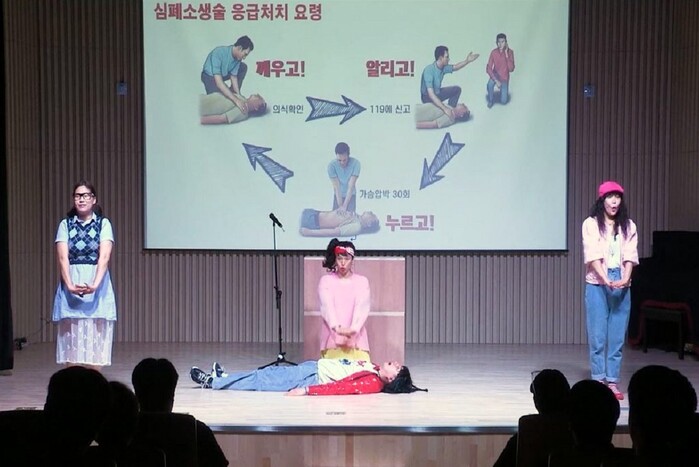 뮤지컬 배우들이 신나는 노래와 안무를 통해 심폐소생술이 필요한 응급환자가 발생하거나 여행지에서 지진과 해일이 일어났을 때 등 다양한 상황에 대처하는 방법을 전한다.