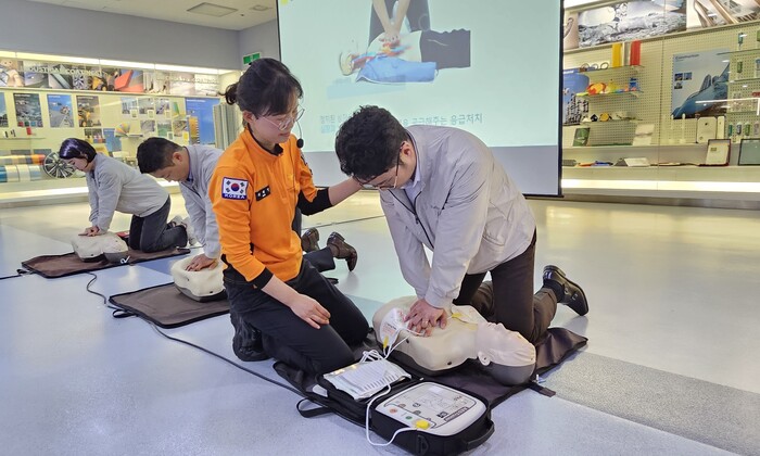 [시민일보 = 이대우 기자] KCC(대표 정재훈)가 서초구 소방서와 함께 응급 상황 발생시 신속한 대처를 통한 소생율 향상 및 임직원 건강관리를 위해 응급처치교육을 진행하고 있다.