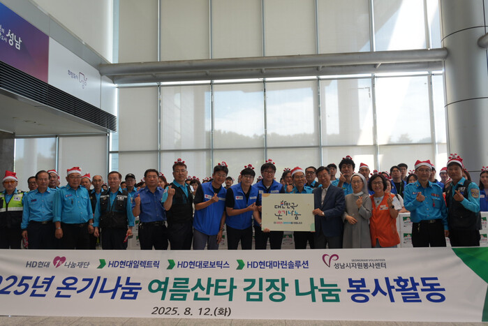 시청홀 1층 로비와 광장에서 열린 ‘2025 온기나눔 여름산타 김장나눔 봉사활동’은 성남시에 본사를 둔 HD현대1%나눔재단, HD현대일렉트릭, HD현대마린솔루션, HD현대로보틱스 등의 기업 후원과 성남시 관내 수정·중원·분당구 모범운전자회와 성남시독거노인종합지원센터의 협력으로 지난해에 이어 두 번째로 열렸다.
